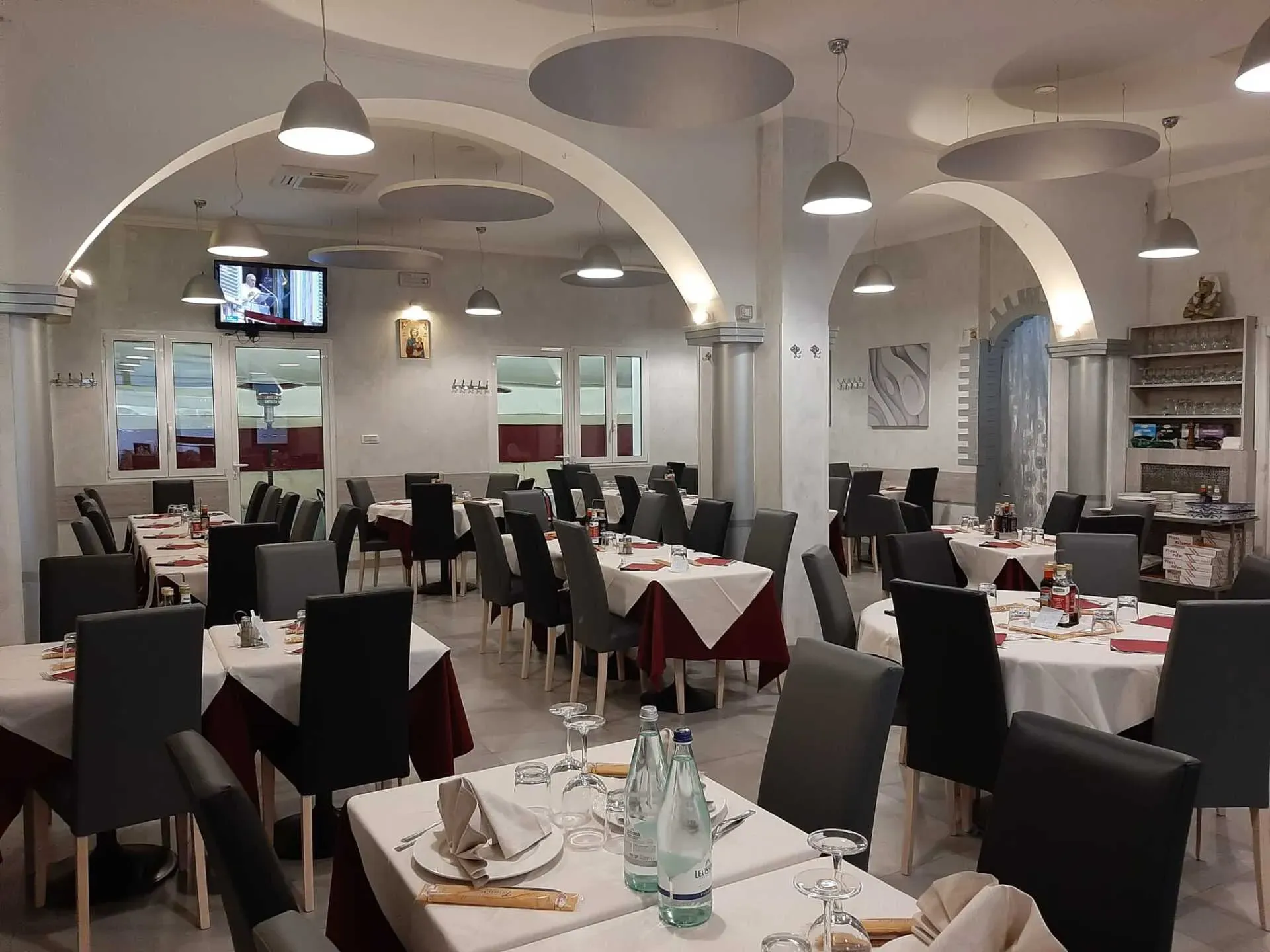 Quattro Archi propone piatti tipici della cucina italiana ed egiziana. E' un locale ideale per l'organizzazione di banchetti, cerimonie, pranzi e cene di lavoro.